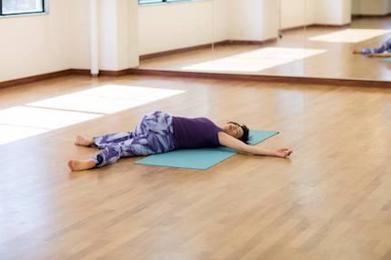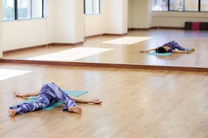 仰向けになって、腰をねじるポーズは、お尻を緩めるのに役立ちます。
