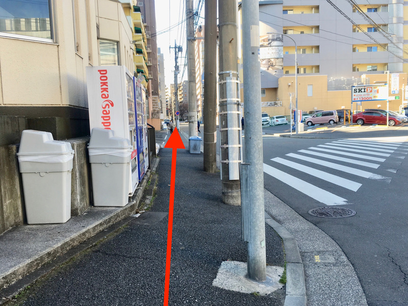 ⑬通路を抜け、正面の横断歩道を渡り右手に進みます