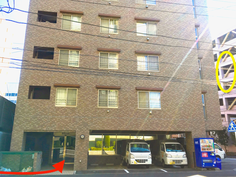 ⑱スタジオビル 「SEエトワール」到着です。ビル隣はニトリです。エレベータで302号室までおいでください。